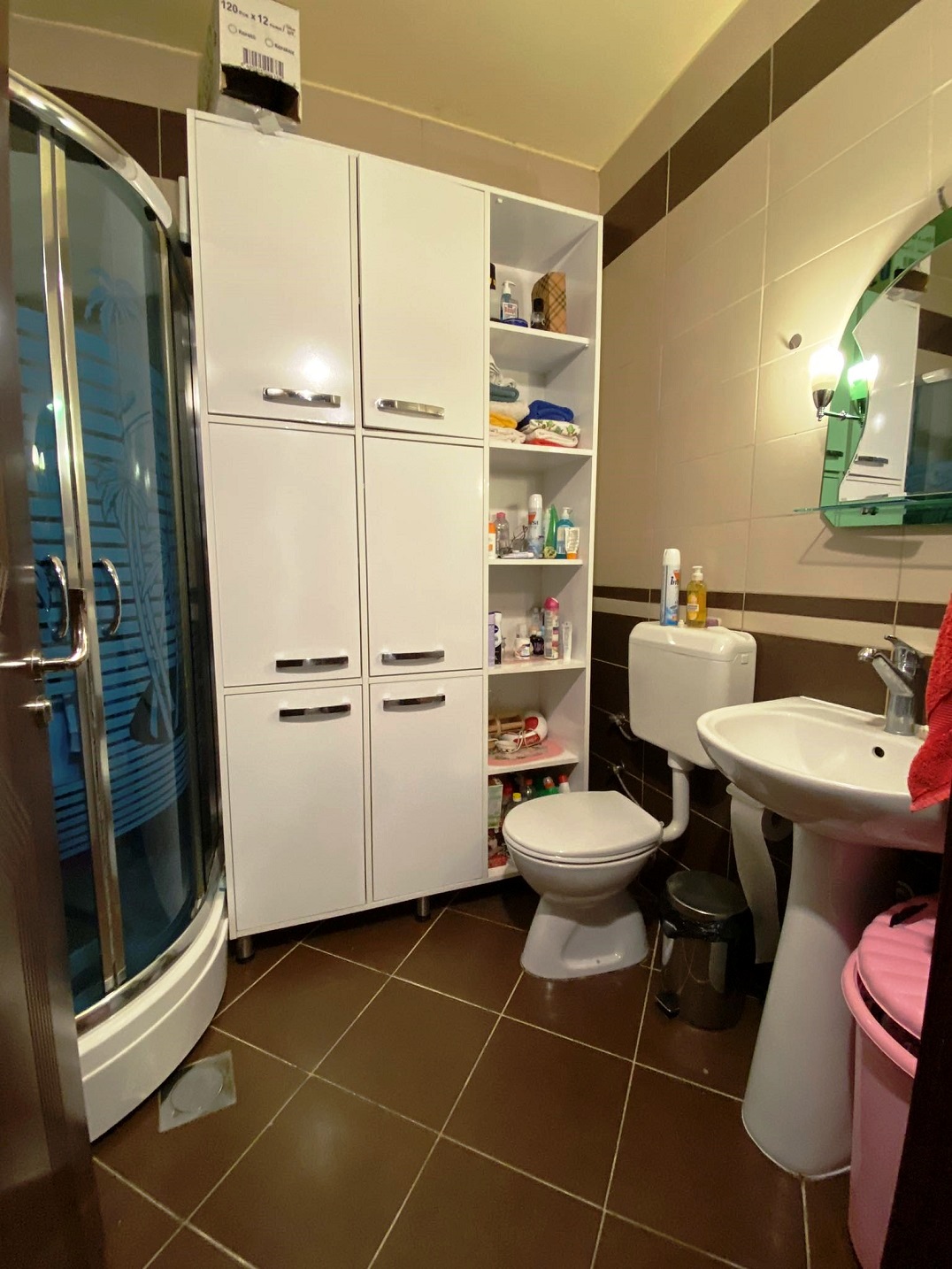 Shitet banesa në lagjën e Spitalit, që është në kati e tetë dhe ka sipërfaqe prej 64m². Banesa përbëhet nga një sallon me kuzhinë dhe tryezari, dy dhoma gjumi, një banjo, një ballkon, ashensor…Në banesë ka ngrohje qëndrore, uje dhe rrymë 24h,… Banesa është e mobiluar, dhe si e tillë edhe shitet…